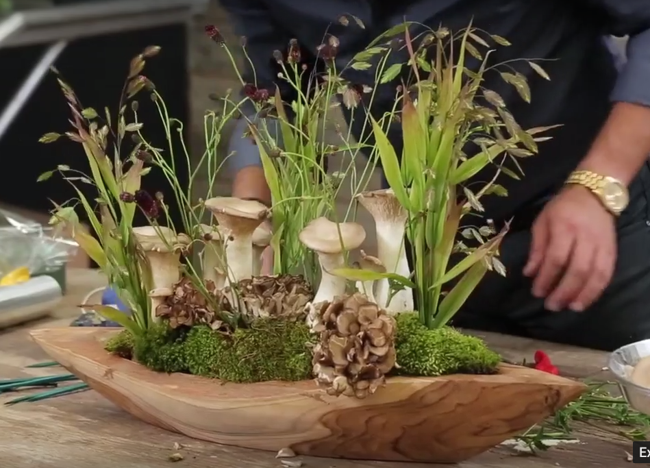An organic Mushroom Floral & Botanical Arrangement designed and demonstrated by Eddie Zaratsian - watch the video to learn how you can make it too!